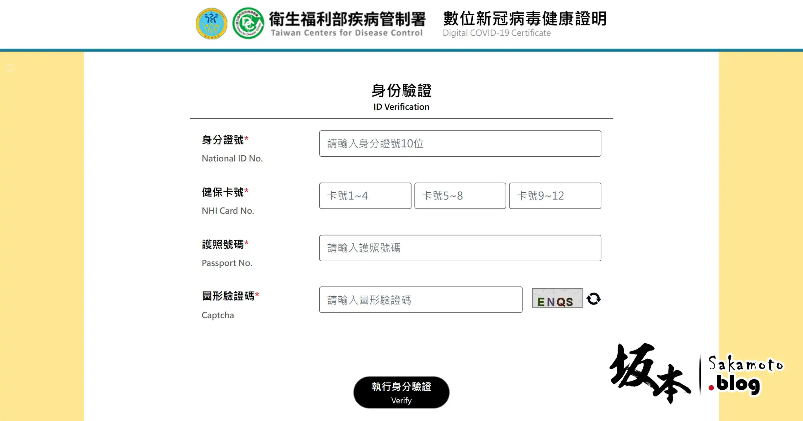 依本國國民身分操作示範,有三種可選擇,看你方便用那一種去登入,然後點選 身分驗證 Verify 進入。