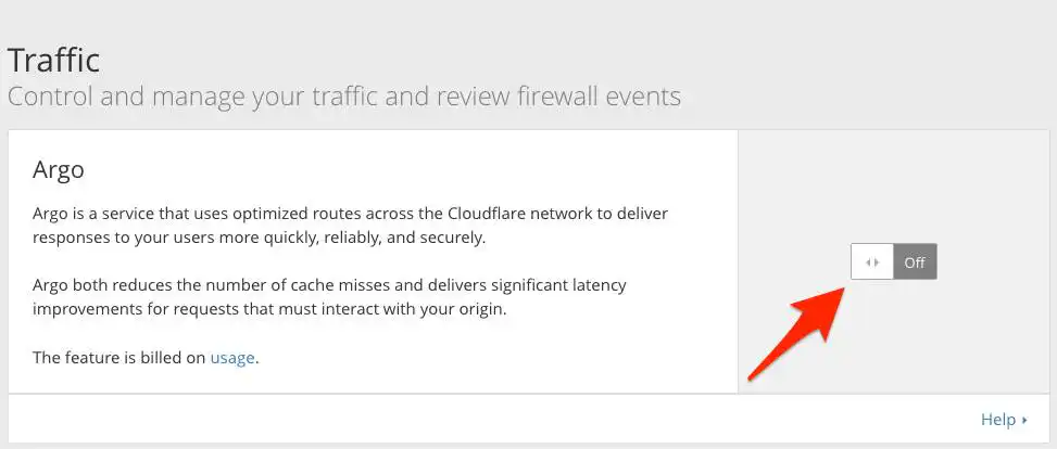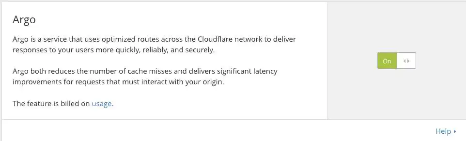 如果您還沒有帳單資料,請填寫帳單資訊,才能進行確認,當切換開啟時,這表示 Cloudflare 正在使用 Argo 來優化路由您的網站流量。