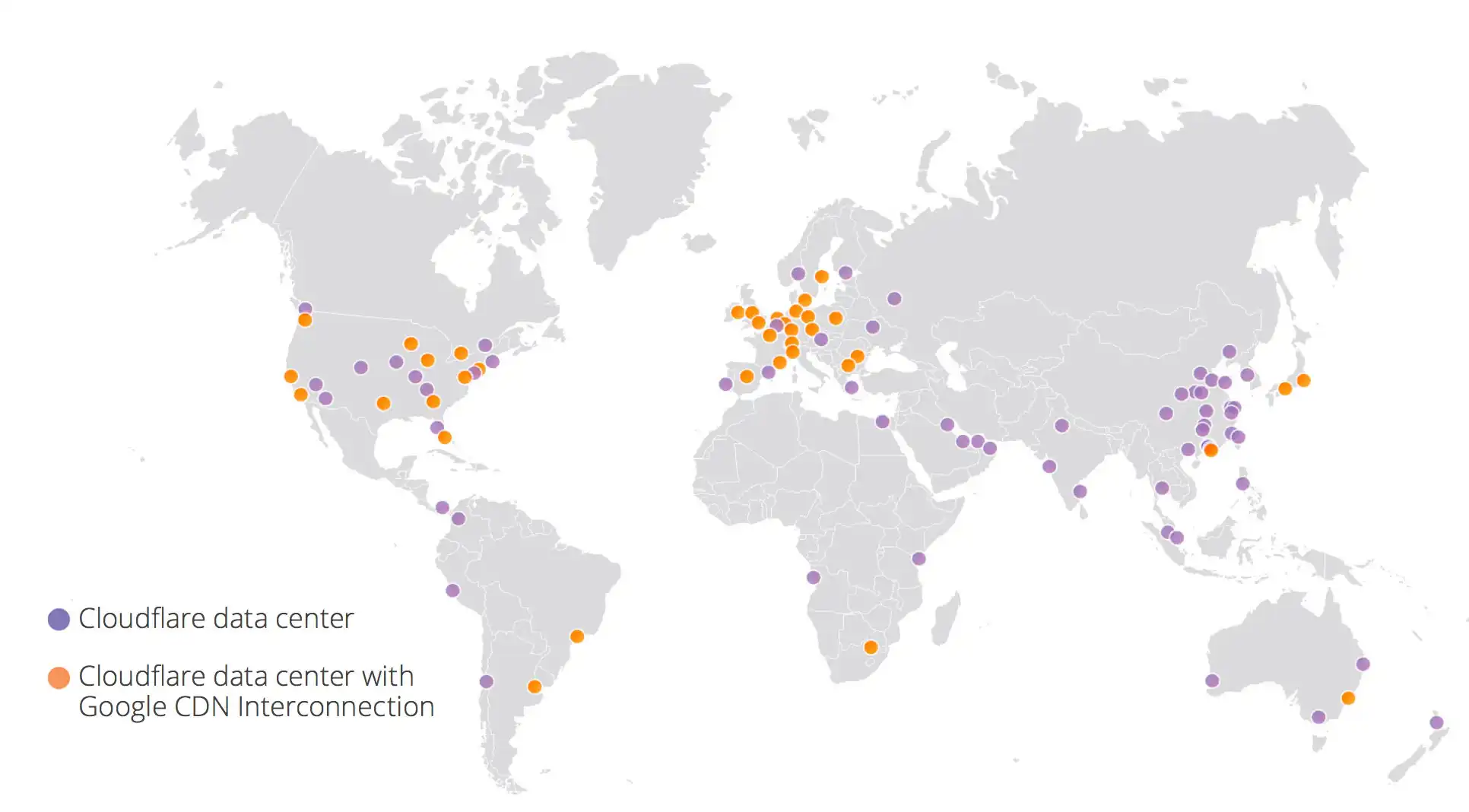 作為此互連計劃的一部分,41個 Cloudflare 數據中心直接連接到 Google Cloud Platform 的基礎架構。 當其中一個 Cloudflare 數據中心請求來自 Google Cloud Platform 來源內容時,它會通過高性能互連 Internet 路由。 這大大減少了原始請求的延遲,並且還在美國,歐洲和亞洲地區提供了優惠的 Google Cloud Platform 出口定價。