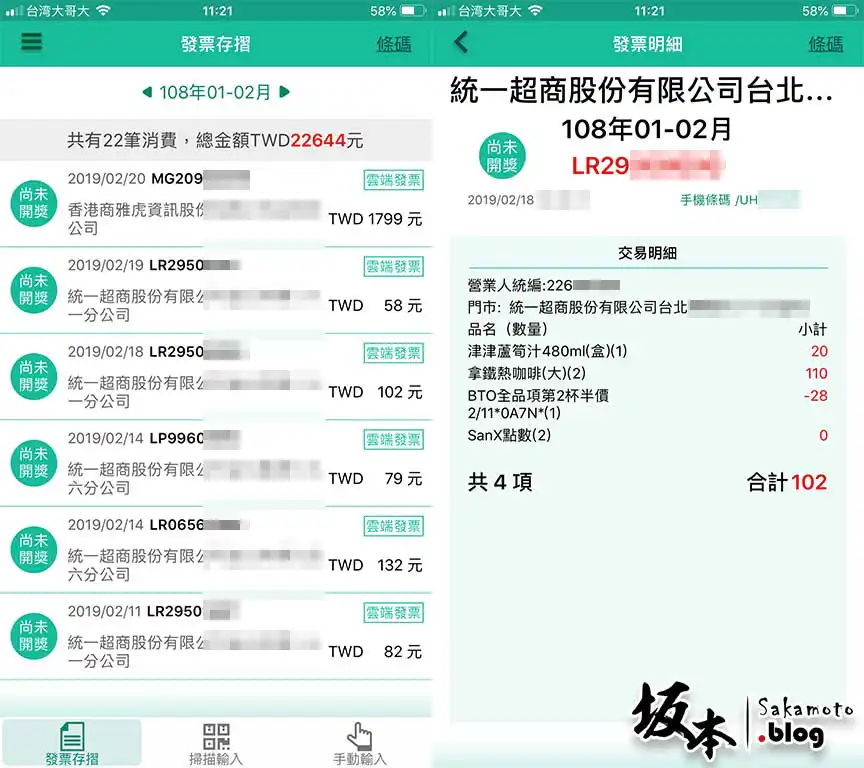 是一種您過去有存電子發票都會記載雲端裡面,從清單可以看到有那些買過的東西,點一下其中一項的發票,就可看到您買東西的明細表,這樣子比較方便核對。