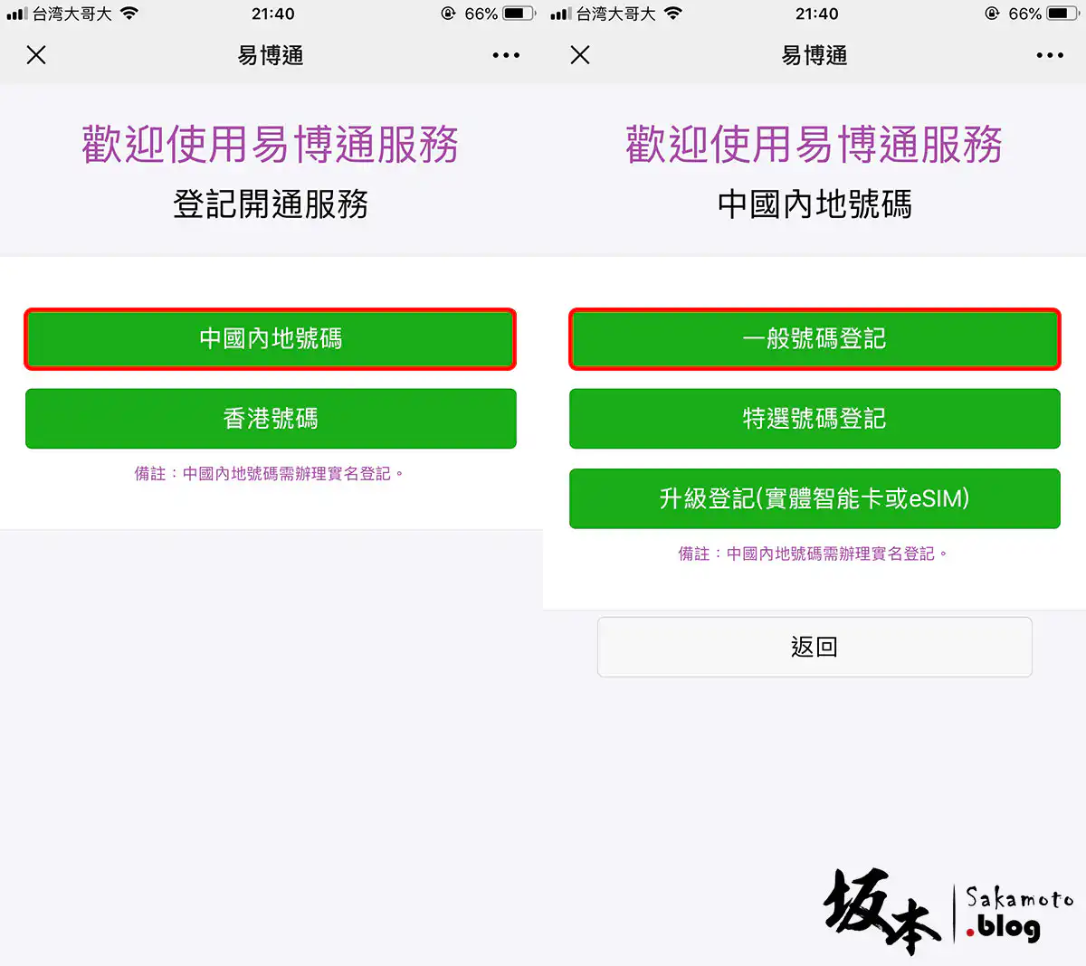 選擇 中國內地號碼 → 一般號碼登記 ,也是隨機選號給您的,若您沒有特別什麼需求,請不要點特選號碼登記 ,因為是要收費的。
