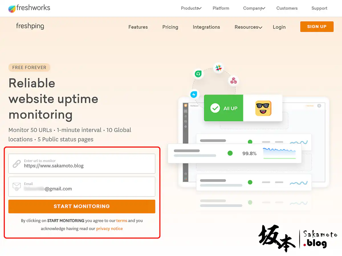 之前有用過老牌 Uptime Robot 免費監視工具服務,不過可惜好像沒有全球各站做為觀測點,以及只能每隔5分鐘檢測一次,不過整體還不錯用,最近看到了另一家由 freshworks 提供 freshping 免費監控網站服務。