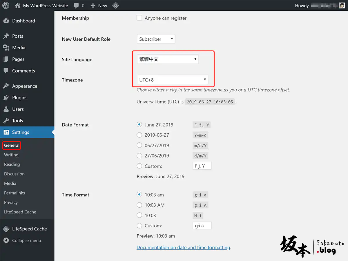 回到 WordPress 後台,若一開始是英文,記得去選語言為 繁體中文。