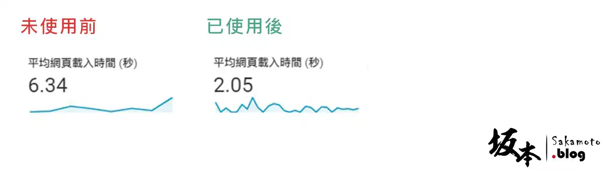 在「平均網頁載入時間」10天收集的變化如下,未使用前為 6.34 秒;而已使用後為 2.05 秒,整體載入平均快了 3 倍。