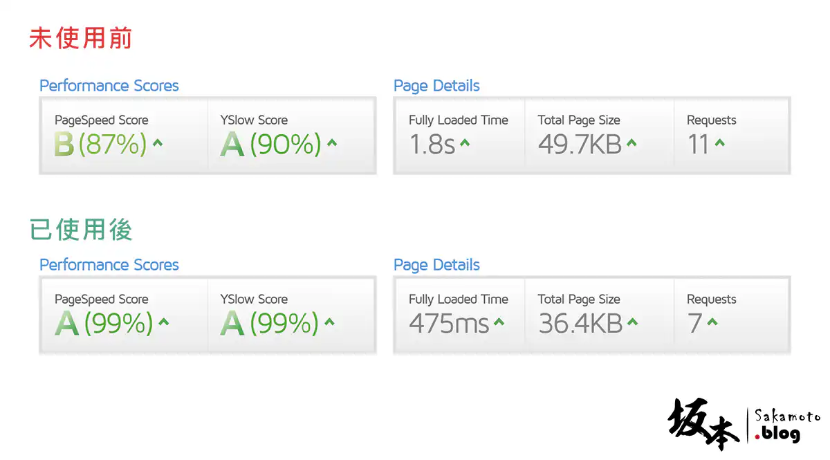 在香港做為客戶點載入測試,使用前為 1.8 秒;而已使用後為 0.475 秒,整體載入平均快了 2 倍。
