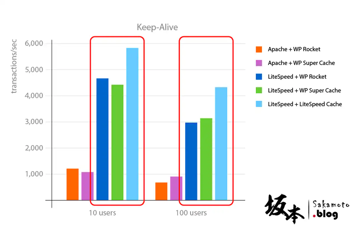 在台灣許多代管租賃主機商,通常是用 Apache 做為伺服器組織架構使用,LiteSpeed 是從 Apache 經過特別改良的伺服器組織架構,根據 LiteSpeed 進行處理 100 用戶執行 PHP Keep-Alive 測試,在基準測試結果顯示,比 Apache 環境快了4~5倍,同時大幅減少記憶體、CPU 使用率。