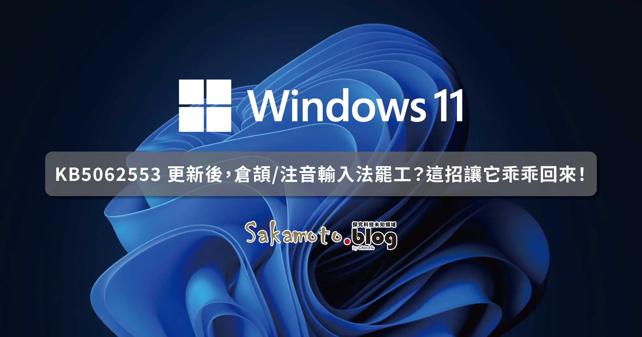 Windows 11 最近更新 KB5062553 導致倉頡 / 注音輸入法突然失效,讓不少用戶打字變成一場災難,本篇教你如何快速解決輸入法罷工問題,無痛恢復倉頡打字人生。