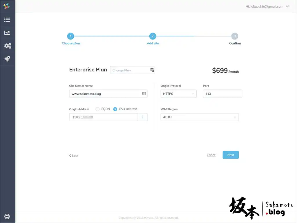 我是選擇 Enterprise Plan 做為操作範示,把要加入網站資料輸入上去。