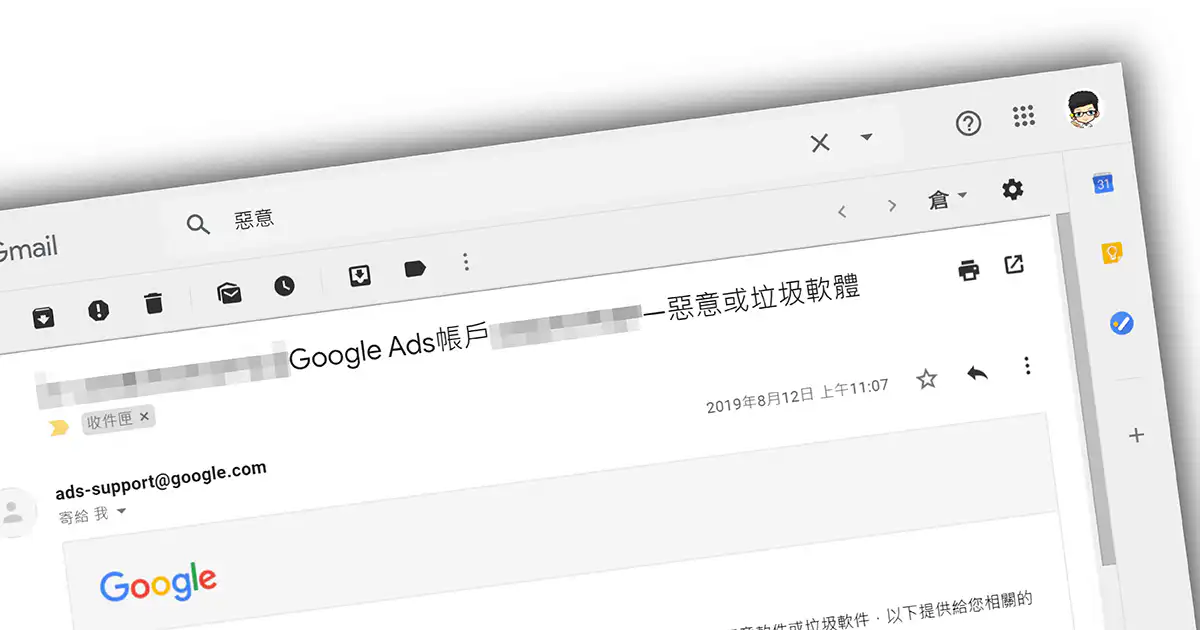 上月客戶找我,收到 Google 通知說「您的 Google Ads 帳戶:廣告已拒登」,之後立... -