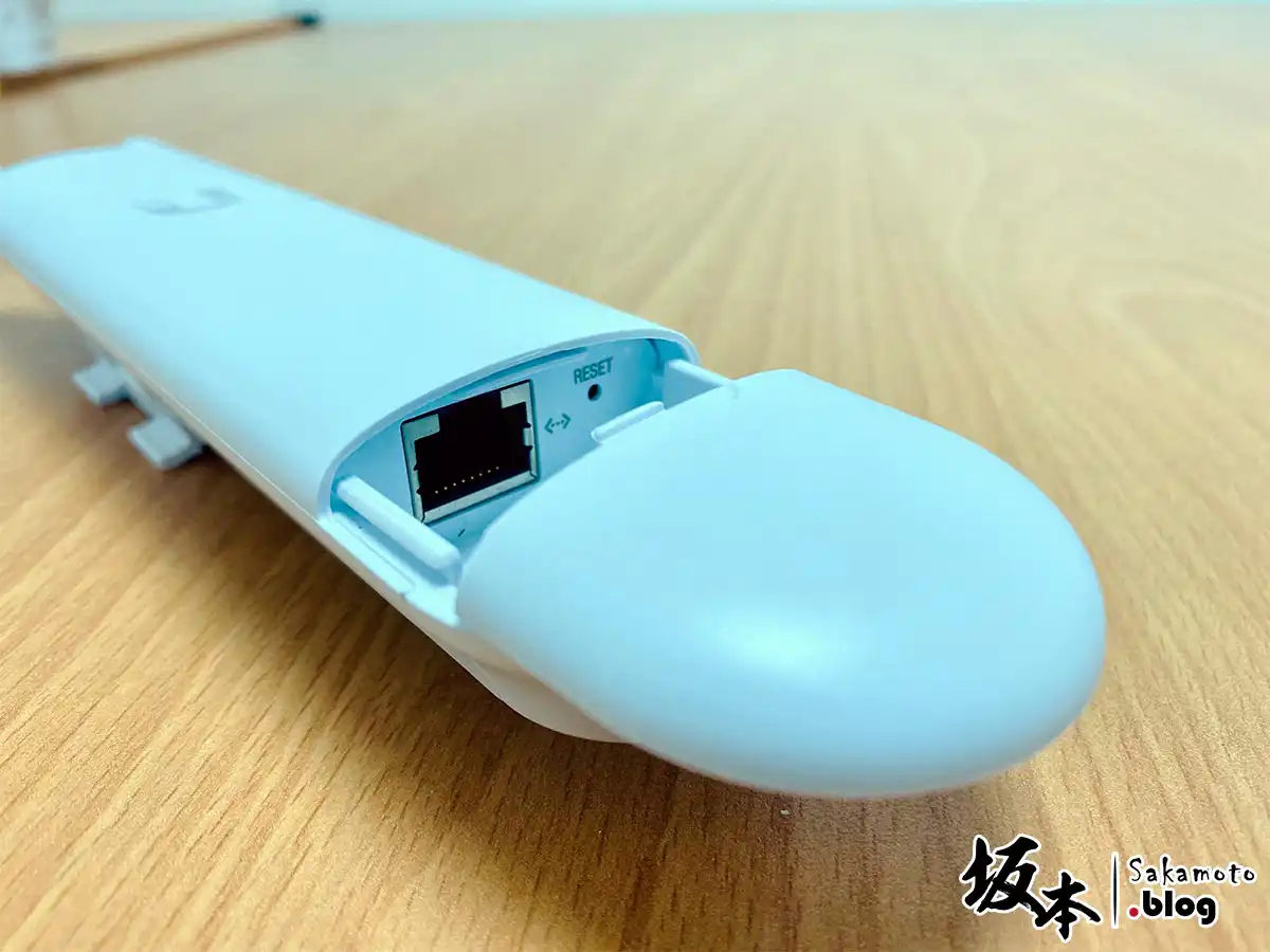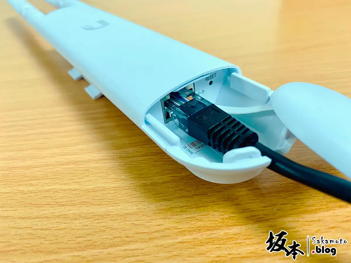 然後另一邊就是 PoE 孔接在 UniFi AC Mesh 上面,LAN 孔是從前端 Router 或牆壁網路孔接上。