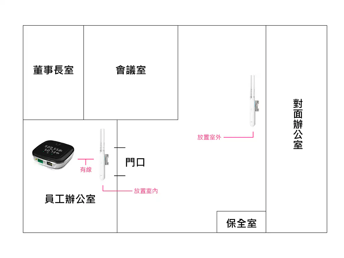 | 董事長室 | 無 Mesh | 51 / 34 Mbps | 64 / 27 Mbps |