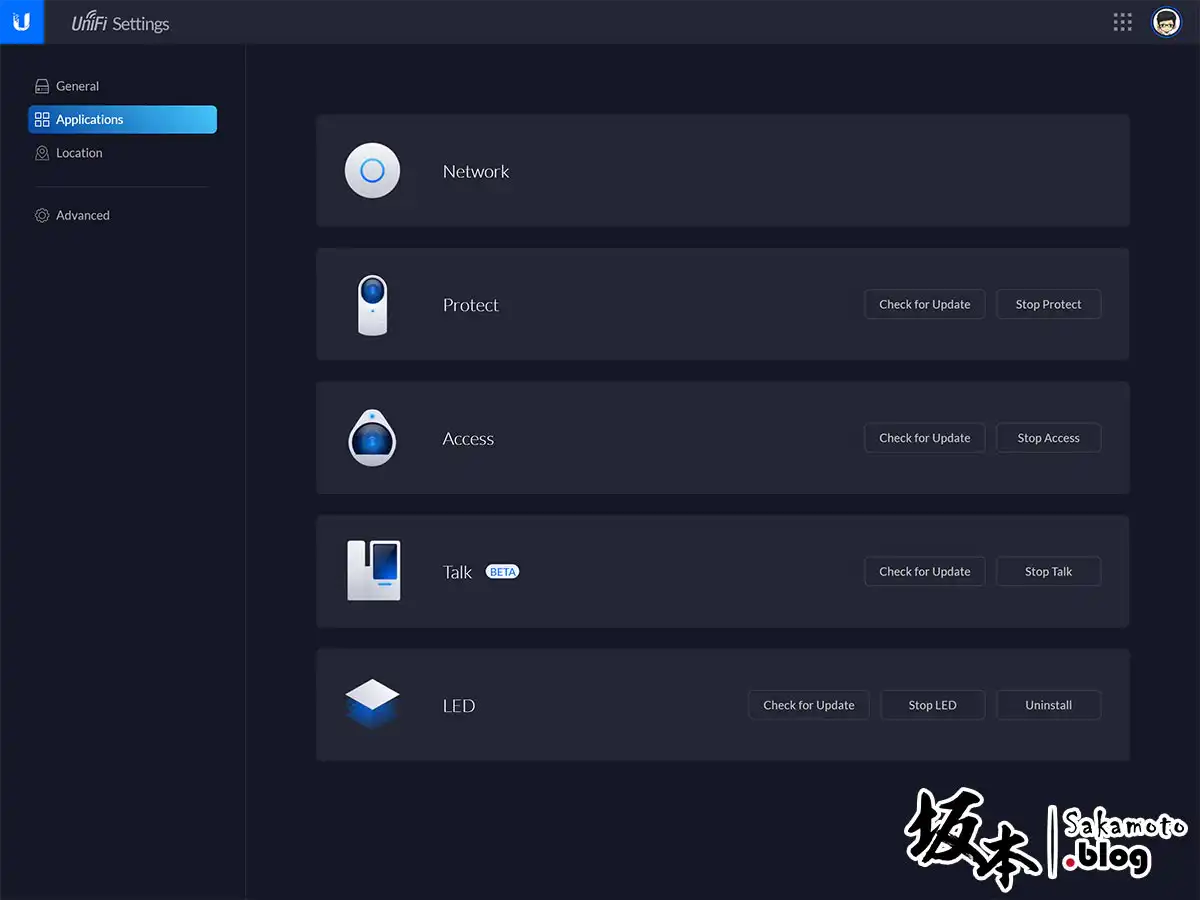 再來是應用程式,有分網路、監控、門禁、Talk、以及LED控制的應用程式,還能獨立升級套件、開關應用。