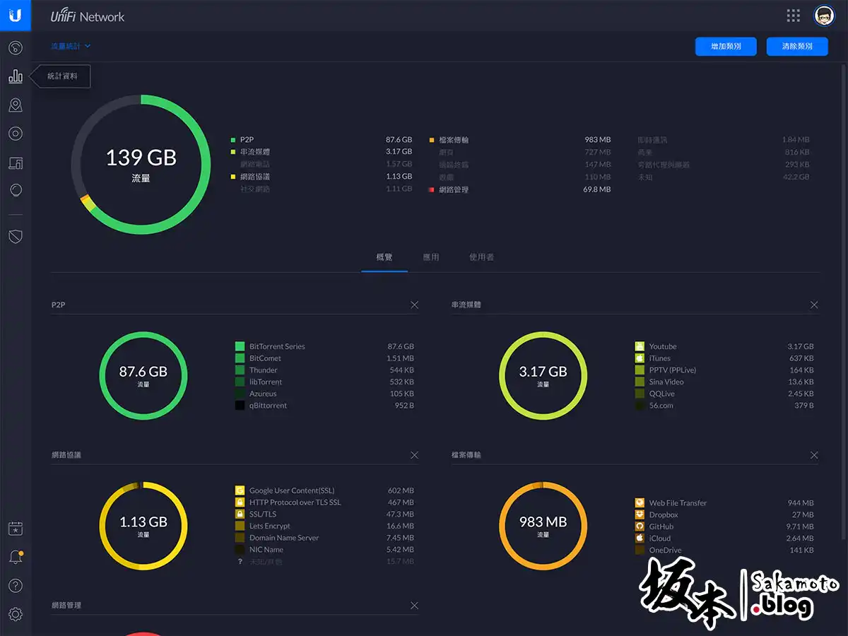 DPI 統計資料,可透過統計數據判讀,有幫你很詳細做分類它是用什麼服務類型,用了多少流量,真的很清楚。