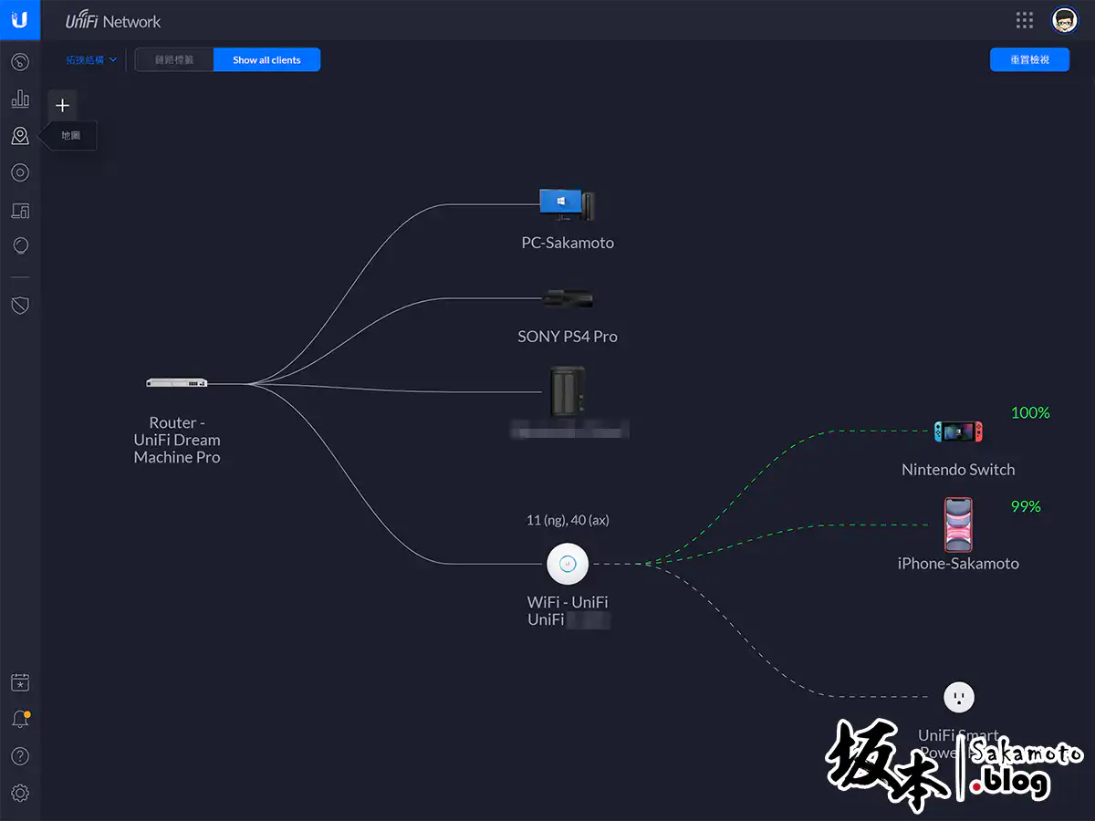 MAP 地圖,它會呈現出來你目前網路架構連線狀態。