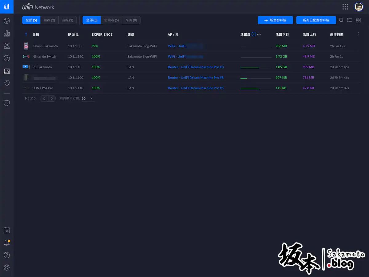 設備,目前有那些 UniFi 設備已被接管,也可以各別設定,例如單獨更新固件、強制同步更新設定、解除接管 (會自動初始化設定) … 等。