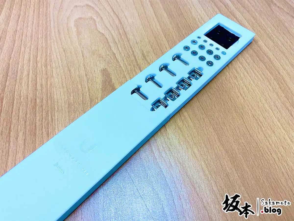 裡分別有本機 UDM Pro 一台、機架、螺絲組配件包、電源線以及說明書。