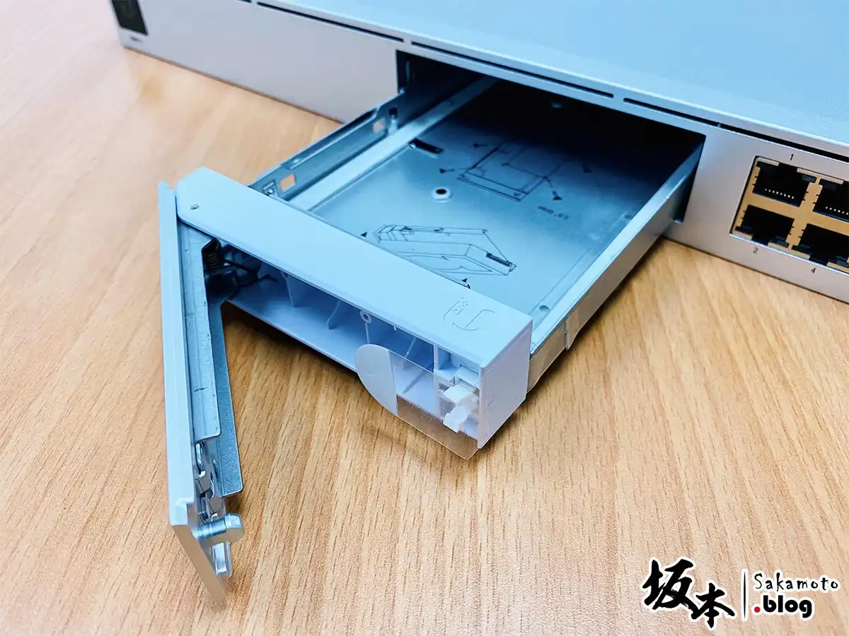 硬碟抽取式,可放置 2.5″ or 3.5″ 硬碟裡面,用來支援 UniFi Protect NVR 儲存功能。