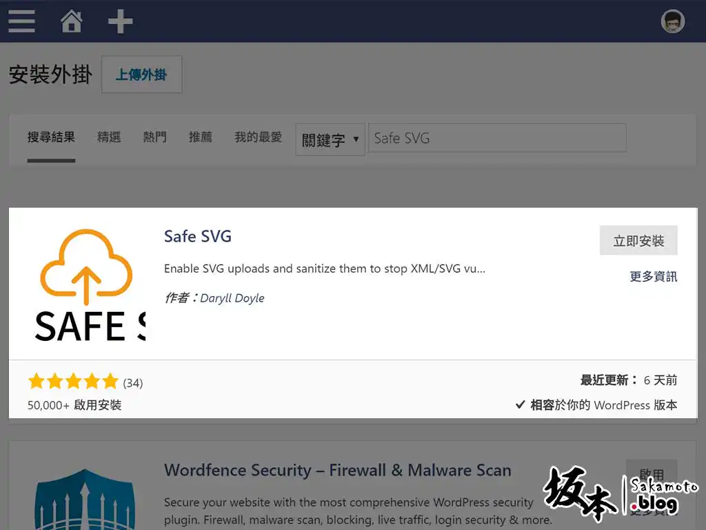 下載連結頁面:https://tw.wordpress.org/plugins/safe-svg/